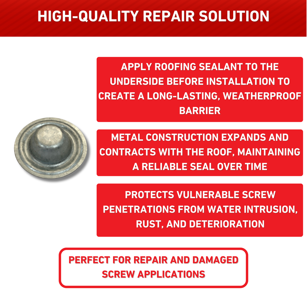 Covers Existing or Broken Screws: Designed to cap over exposed, stripped, or broken roofing screws to restore protection and prevent leaks